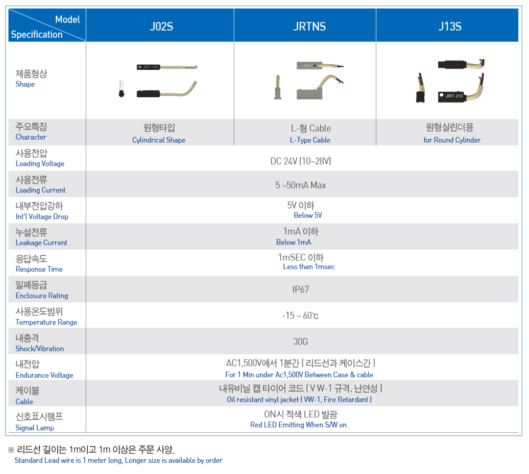 BẢNG KẾT HỢP SẢN PHẨM JRT VỚI CẢM BIẾN