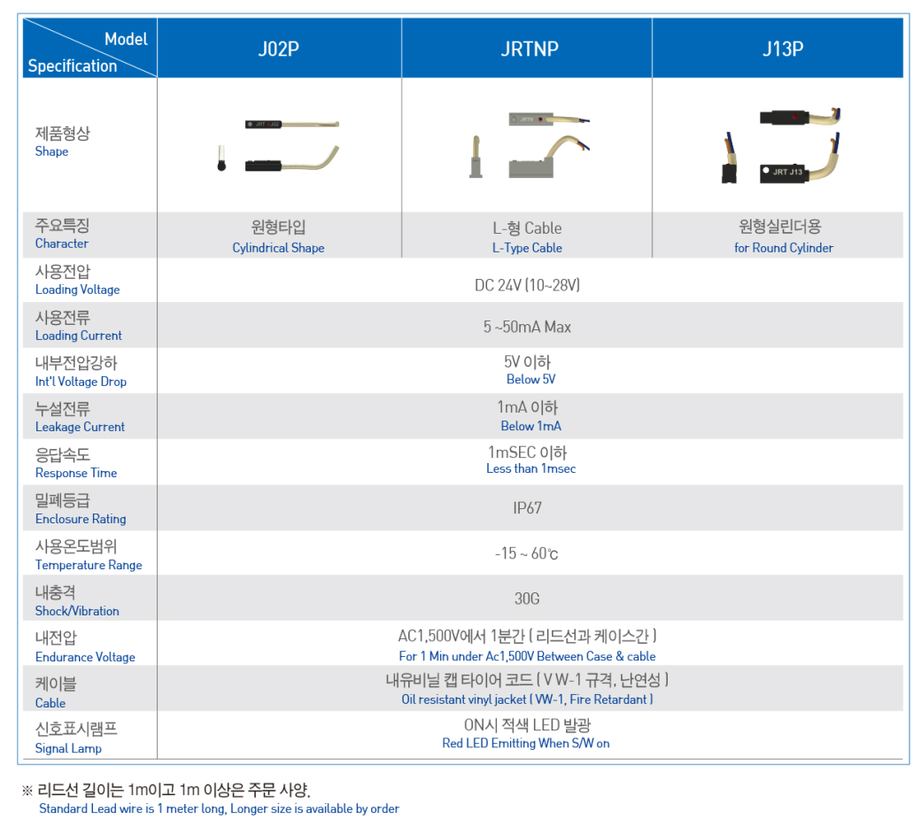 BẢNG KẾT HỢP SẢN PHẨM JRT VỚI CẢM BIẾN